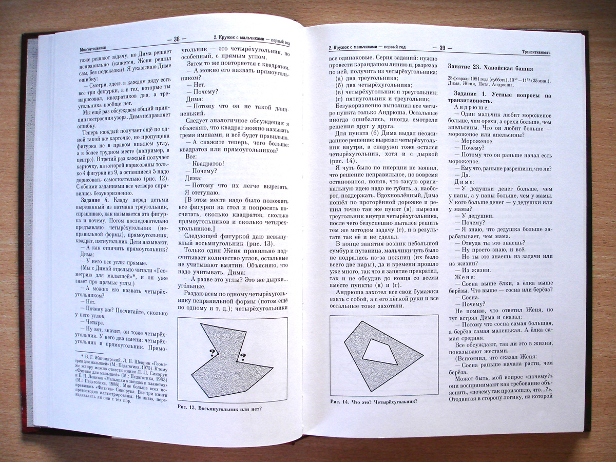Хороший обкладинка, лакована тверда обкладинка, формат книги великий (167×236 мм). Цю книгу дуже зручно використовувати в якості конспектів занять з дітьми-дошкільниками. Причому сам автор описує і реакції дітей на ті чи інші завдання, запропоновані ним. Деякі задачки діти сприймали із захопленням, інші не пішли і не зацікавили малюків. Все чесно.