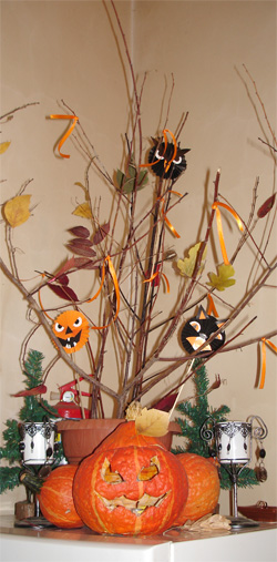 Для оформлення свята, можна зробити гарбузова дерево. Ця композиція прикрасить стіл і додасть інтер'єру святкову атмосферу. Декорація у вигляді гарбузового дерева добре впишеться на будь-який святковий стіл і додасть святу і святковим фотографій неповторний вигляд.