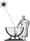 В день летнего солнцестояния установив в этих городах скафисы (чашеобразные солнечные часы) с длинной иглой-штырем, он определил под каким углом Солнце находится на небе. Измерив угол и зная расстояние между городами, простой формулой он без проблем смог определить и радиус.