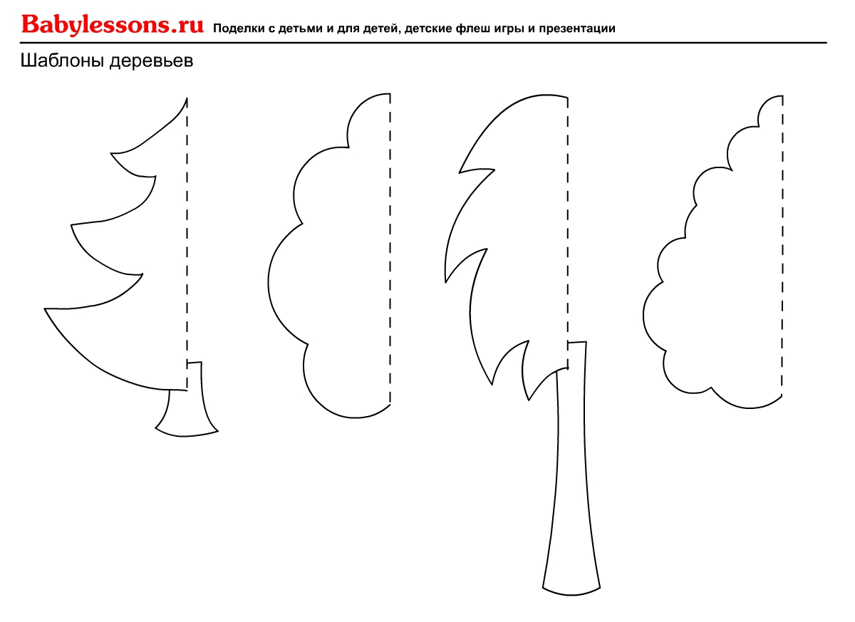 - Подготовьте ребенку элементы аппликации для наклеивания. Шаблоны деревьев можете распечатать.