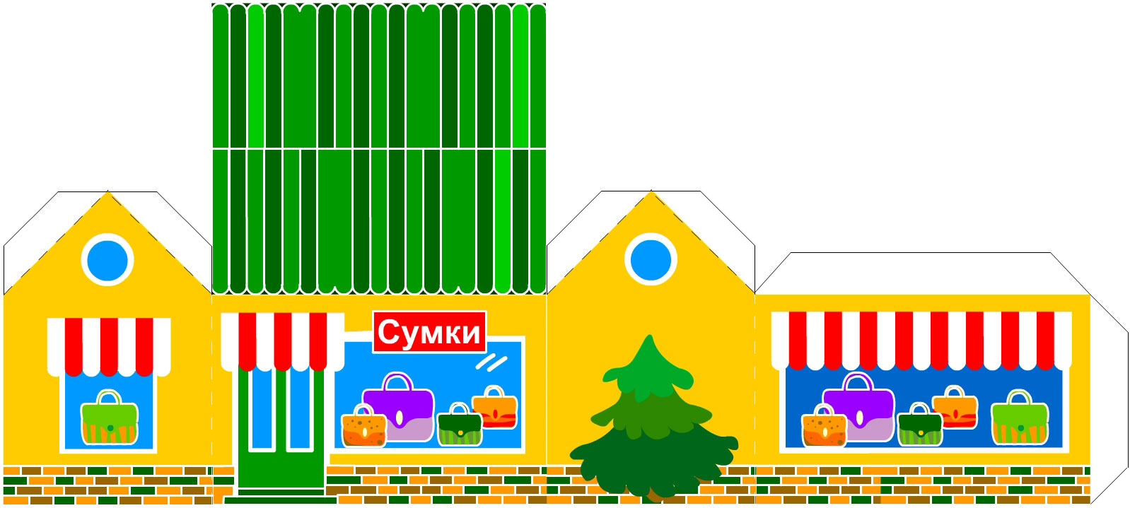 Соберите несколько домиков из бумаги своими руками и вы с ребенком сможете освоить основы градостроительства. В планировке города не забудьте про зеленую (парковую зону), магазины (общественный центр) и жилую застройку. По мере возможности, мы будем выкладывать новые домики для вашего городка. Сегодня - это магазинчик с сумками, в скором времени планируем магазин игрушек. Когда с детьми освоите эти простые домики можно будет переходить к более сложным моделям