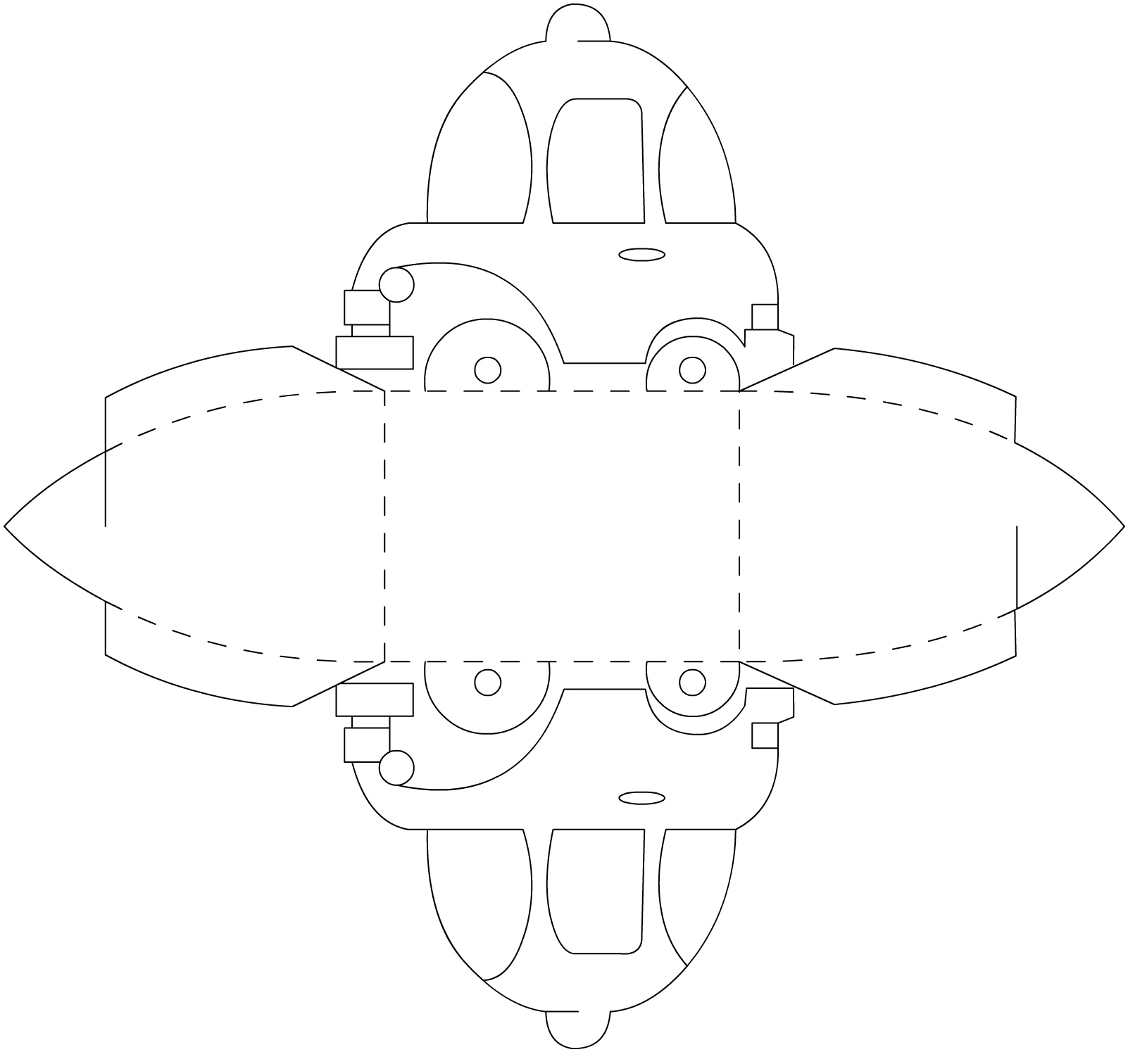 - Інший варіант - роздрукувати викрійку на кольоровому картоні. А віконця, колеса та інші деталі розфарбувати гуашшю. Таку коробку буде цікаво робити разом з дитиною і вона точно буде в єдиному екземплярі.
