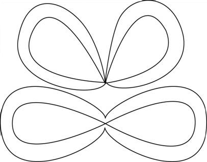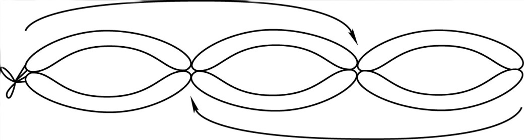 - Нижний элемент для елочки делается из двух шариков колбаски. Оба шарика завязываются в виде “восьмерки” и перекручиваются посередине. Это самый большой элемент в нашей елке. (Смотри схему сборки елки)
