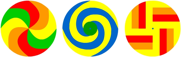 Ось ще кілька стандартних варіантів розмальовки волчков. При обертанні виходять цікаві градієнтні заливки. Ви можете завантажити і роздрукувати вовчки для дослідів за нашими схемами. Для цього натисніть на картинку для збільшення.