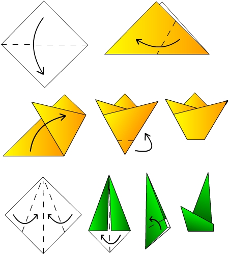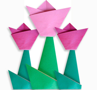 Тюльпан из бумаги. Объемный. - Классическая модель оригами для детей, знакомая старшему поколению со школы.