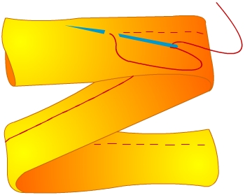 - Тепер вставте один край стрічки в іншій, намагаючись поєднати шов і зшийте стрічку, підгинаючи край всередину.