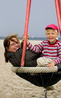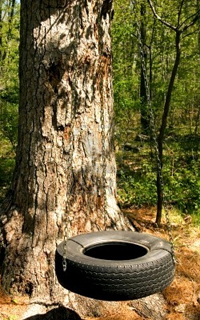 Гойдалки з шини Якщо у вас є стара покришка і товсте дерево поблизу, неодмінно зробіть гойдалки з колеса. Є кілька варіантів таких гойдалок. На кілька людей - коли покришка вішається на 3-4 ланцюгах горизонтально землі і варіант простіше - покришка просто прив'язується однією мотузкою до дерева і висить вертикально. Гойдалки виходять громіздкі, не зовсім для дачі, більше для лісового масиву. |