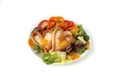 Яичница. “Сердце”Состав: Яйца, сосиски, соль, масло для жарки. |